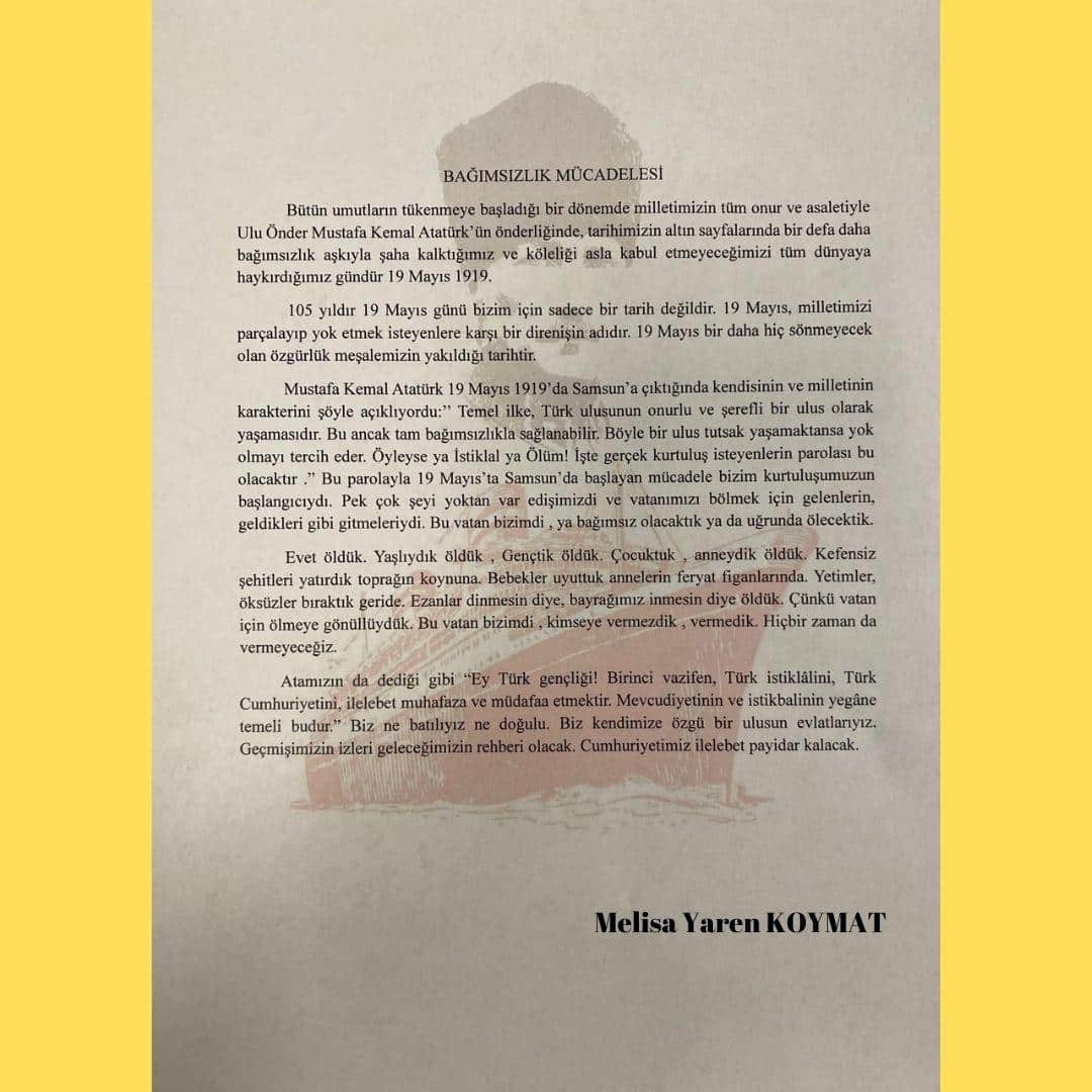 19 Mayıs Konulu Şiir Yarışması İlçe Birinciliği